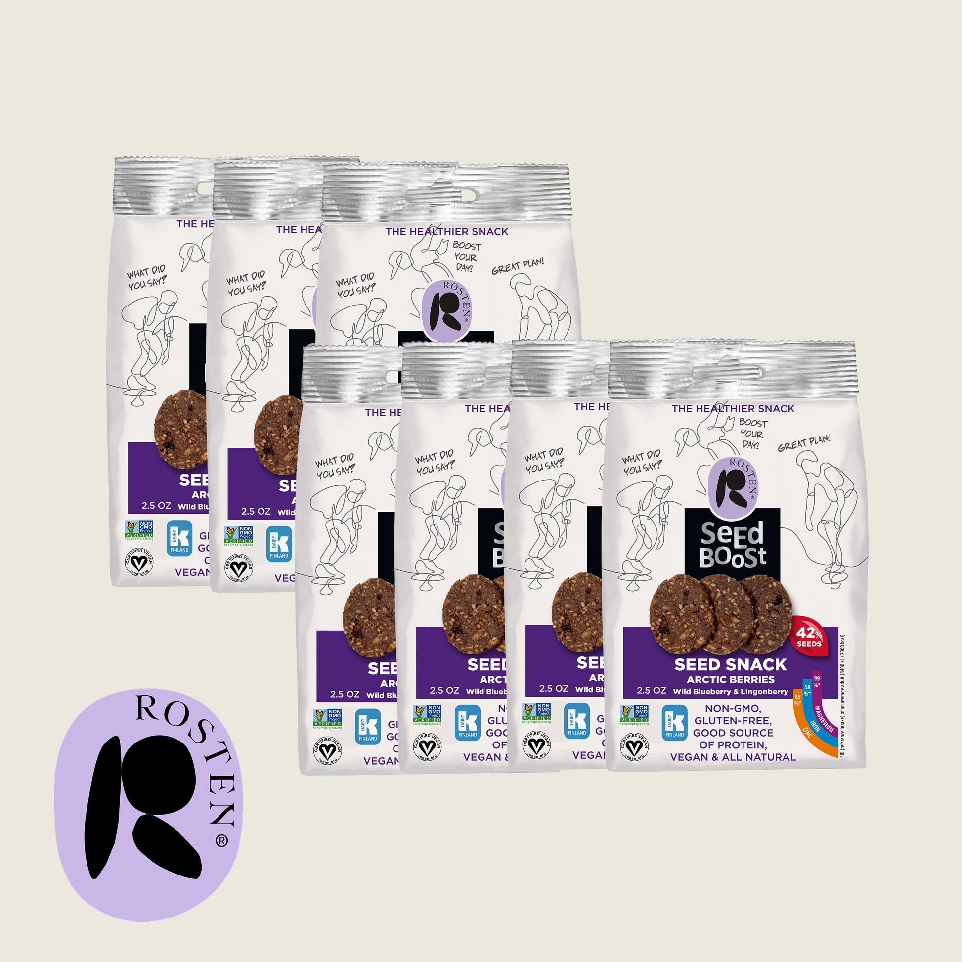 Gluten-free whole grain OAT flakes (Finland), sunflower seed, SESAME seed, hemp protein, chocolate chip 10 % (sugar, cocoa mass, cocoa butter, emulsifier sunflower lecithin), peeled hemp seed, rapeseed oil, sugar syrup, dried berries 4 % (blueberry and lingonberry), potato flakes, sea salt. Product contains seeds 42 %.